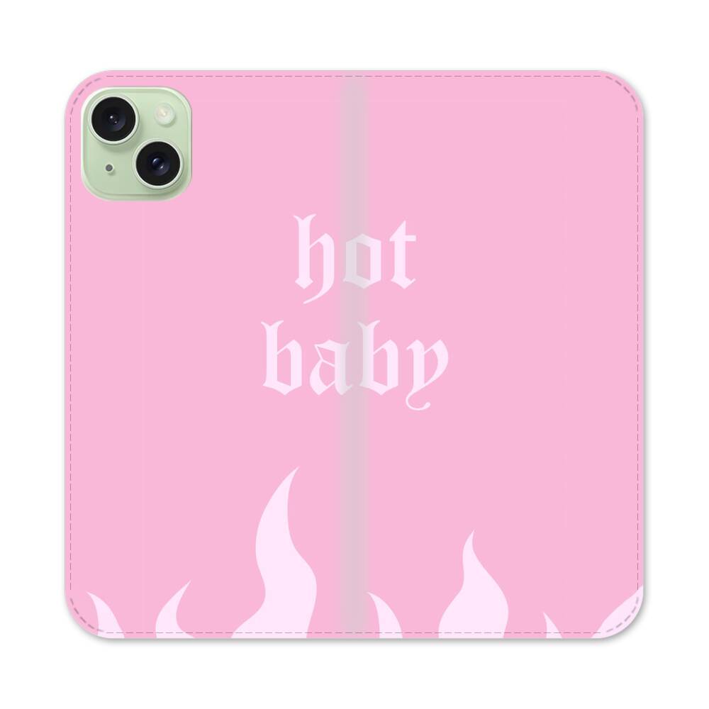 Flammen auf dem pinken Hintergrund Apple iPhone 15 Plus Flip Case● Seitlich klappbar