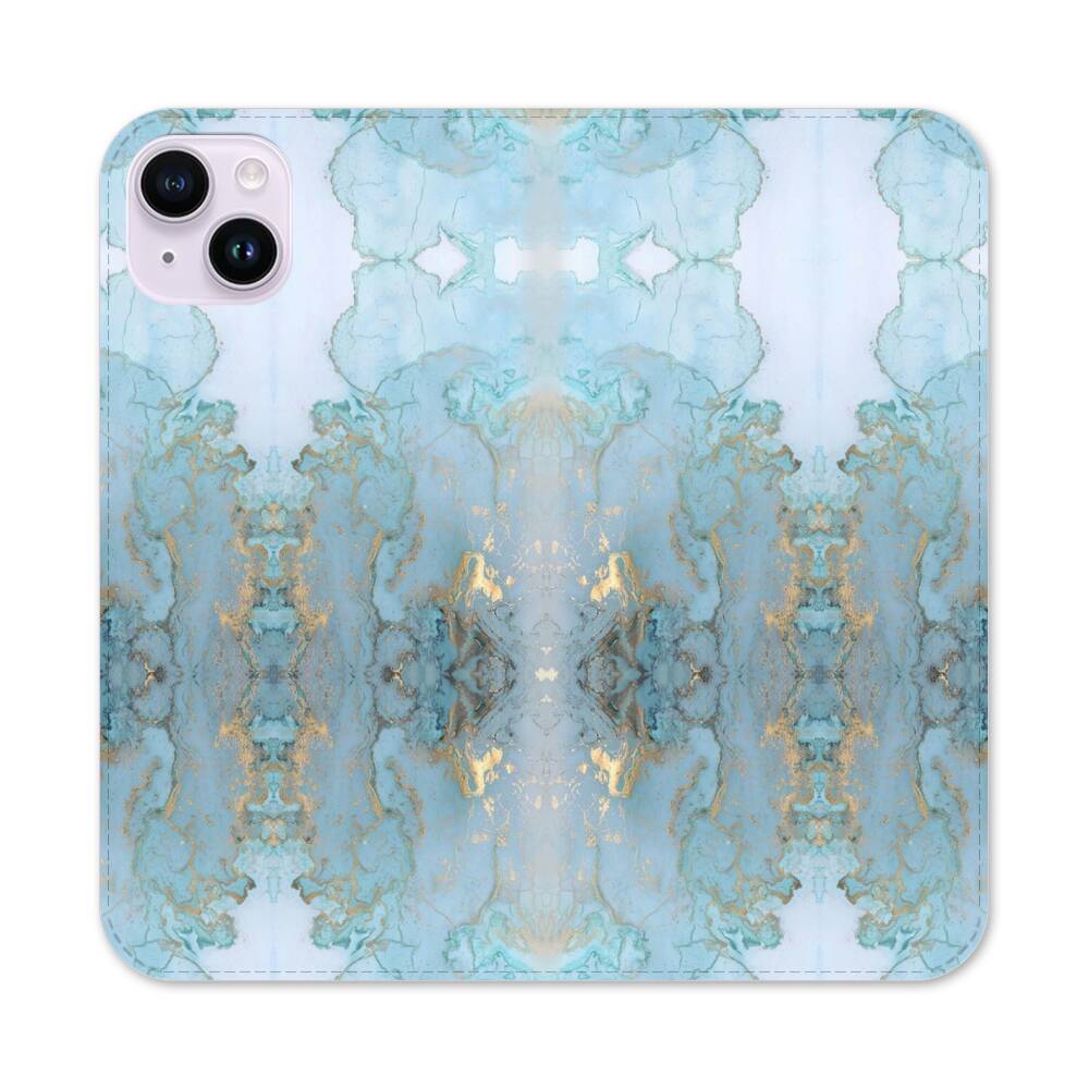 Blau und Gold Marmor Apple iPhone 14 Plus Flip Case● Seitlich klappbar