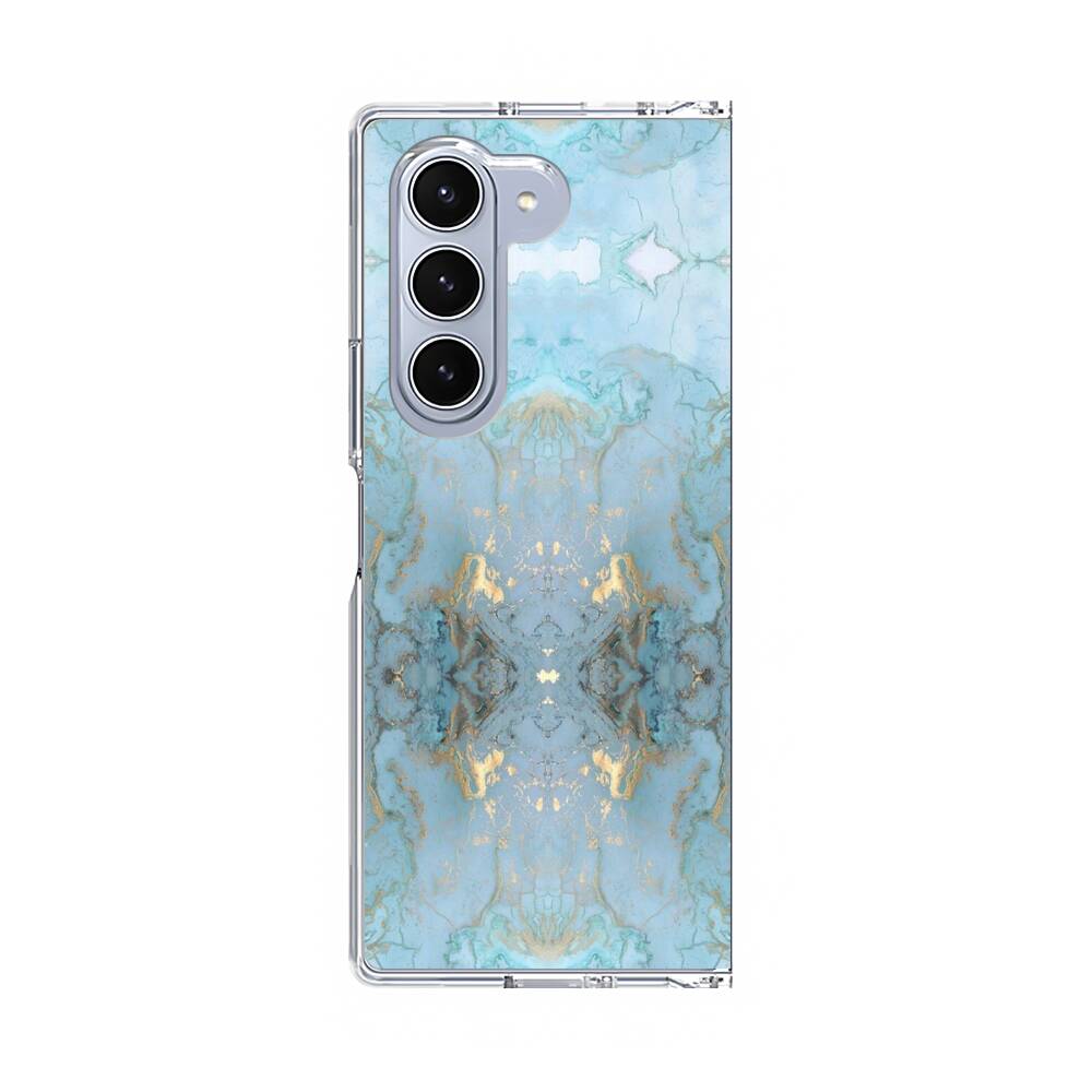 Blau und Gold Marmor Samsung Galaxy Z Fold 6 Silikon Hülle● Sehr robust & langlebig