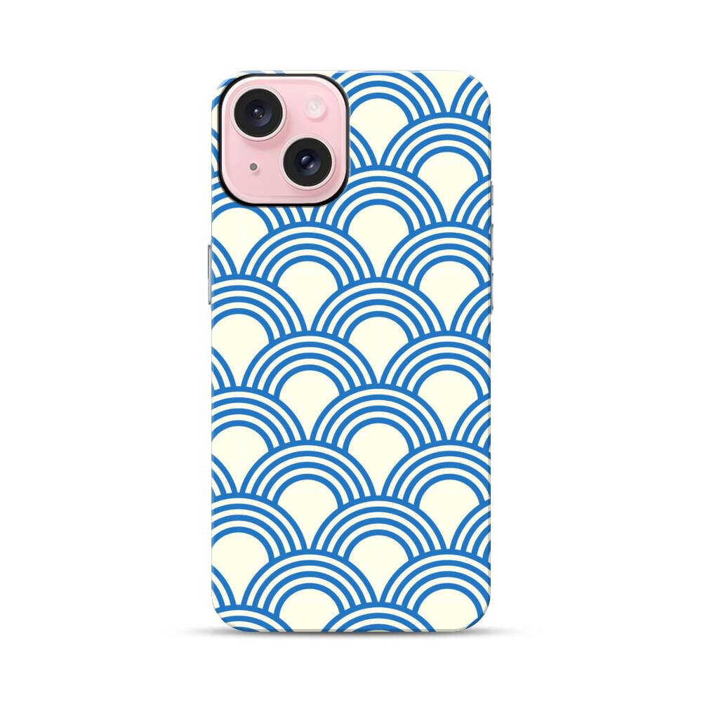 Blaue Halbkreis Muster Apple iPhone 15 Hybrid Case● Rundum bedruckbar