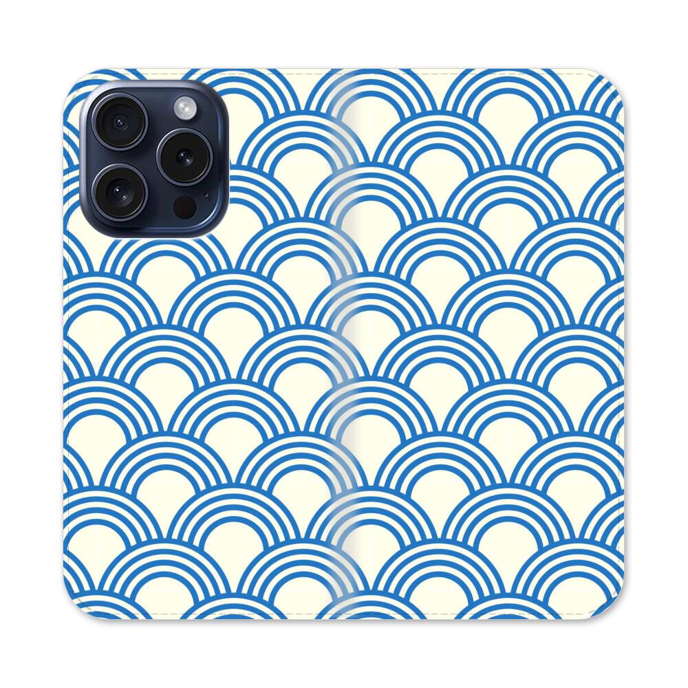 Blaue Halbkreis Muster Apple iPhone 15 Pro Flip Case● Seitlich klappbar