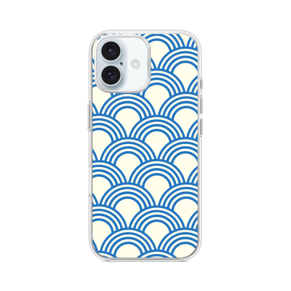 Blaue Halbkreis Muster iPhone 16 Plus MagSafe‑kompatible Silikonhülle mit Kamera‑Kickstand● Sehr robust & langlebig