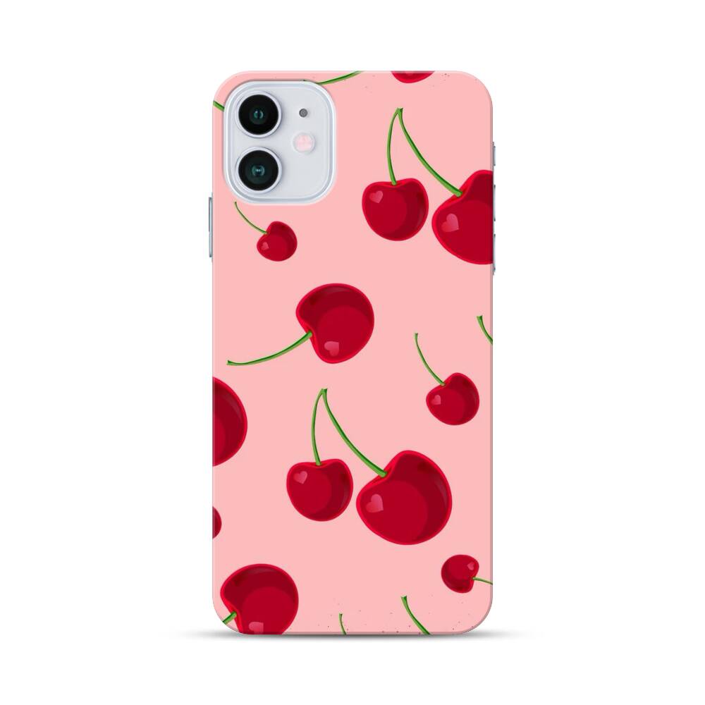 Kirsche auf dem pinken Hintergrund Apple iPhone 12 Hülle● Rundum bedruckbar