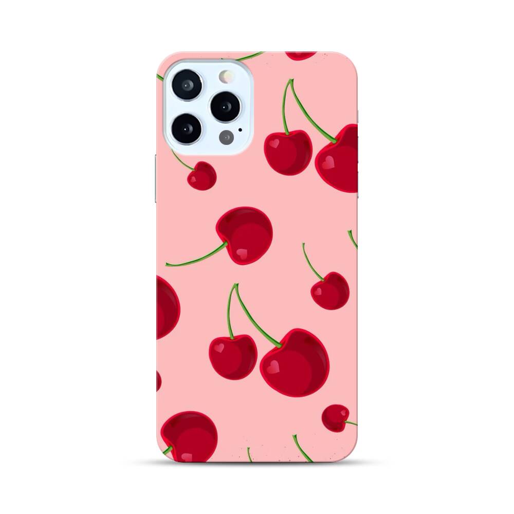 Kirsche auf dem pinken Hintergrund Apple iPhone 12 Pro Hülle● Rundum bedruckbar