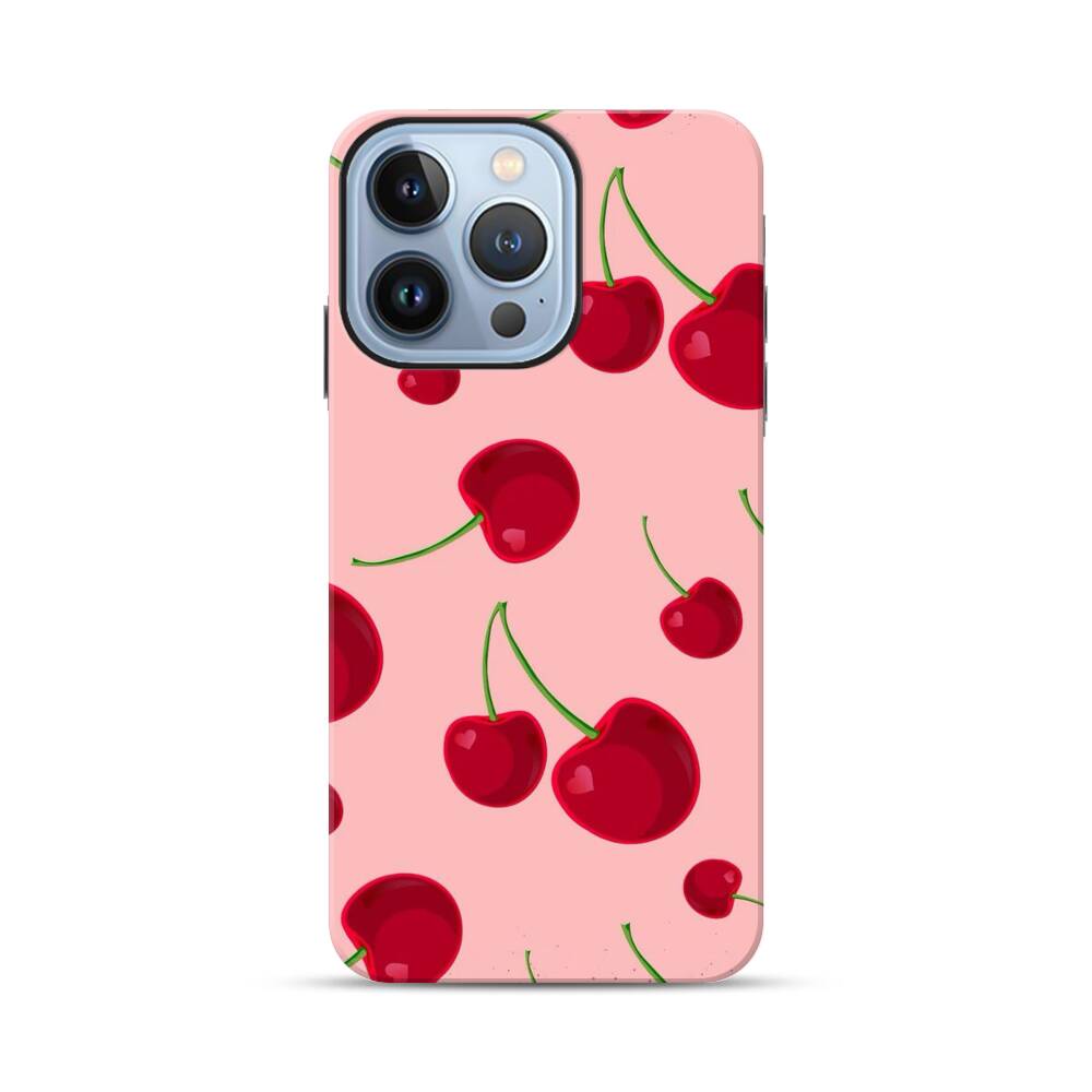 Kirsche auf dem pinken Hintergrund Apple iPhone 13 Pro Max Hybrid Case● Rundum bedruckbar