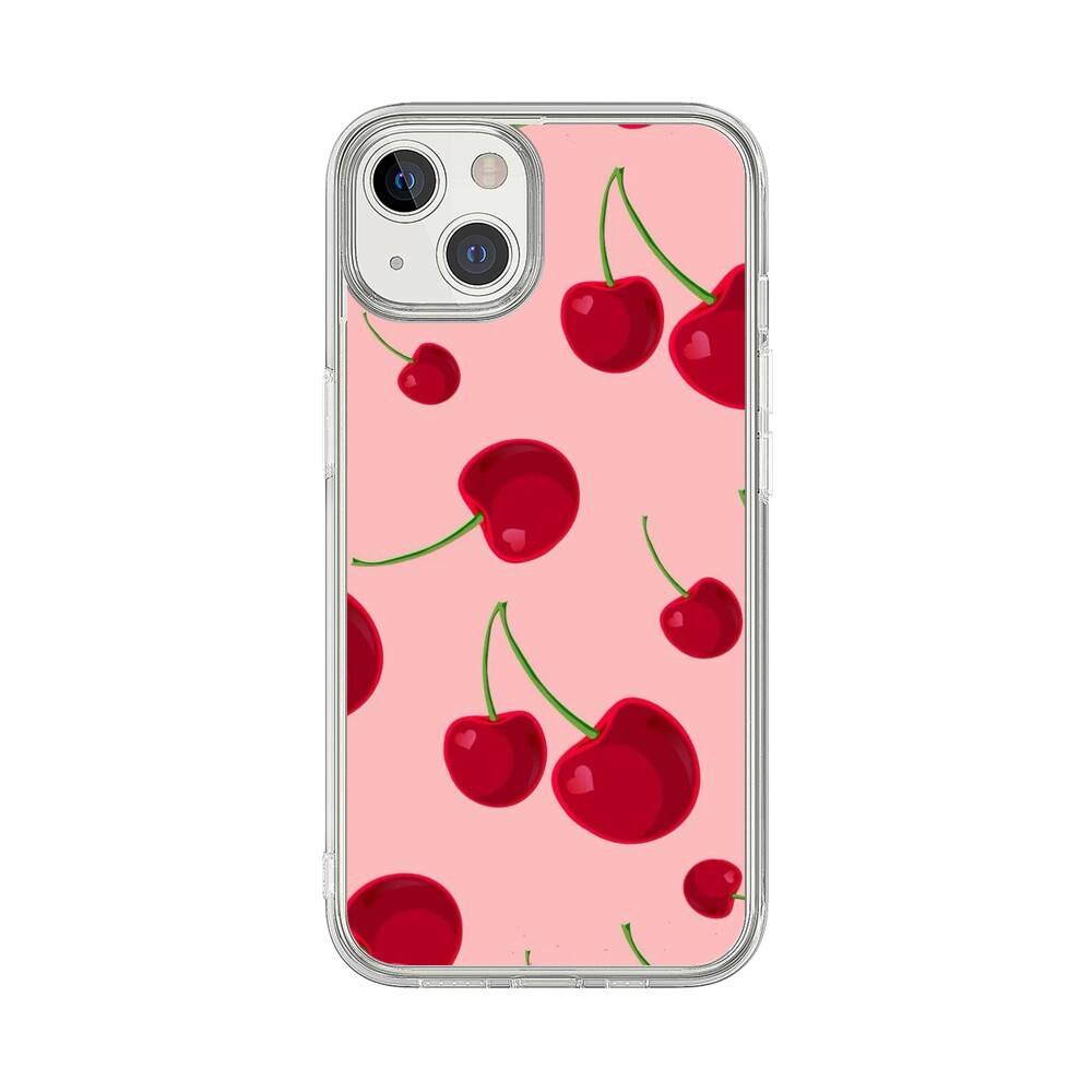 Kirsche auf dem pinken Hintergrund Apple iPhone 13 Silikon Hülle● Sehr robust & langlebig