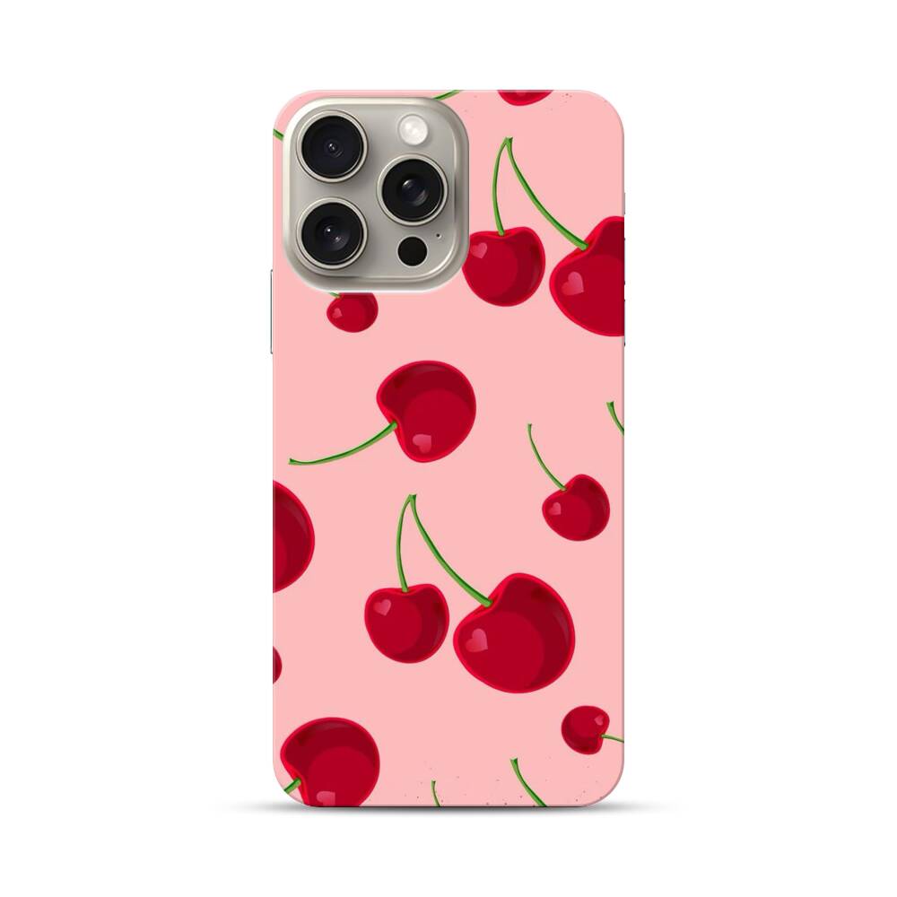 Kirsche auf dem pinken Hintergrund Apple iPhone 15 Pro Max Hülle● Rundum bedruckbar