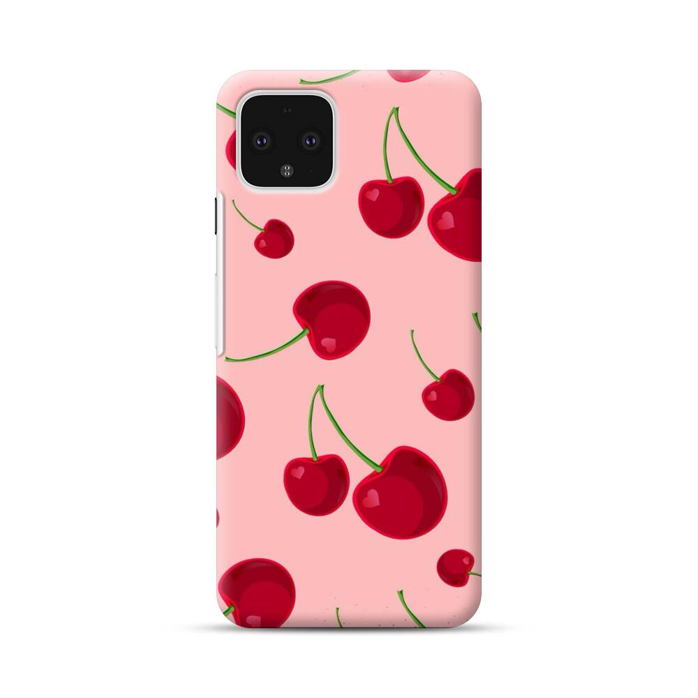 Kirsche auf dem pinken Hintergrund Google Pixel 4 Hülle● Rundum bedruckbar