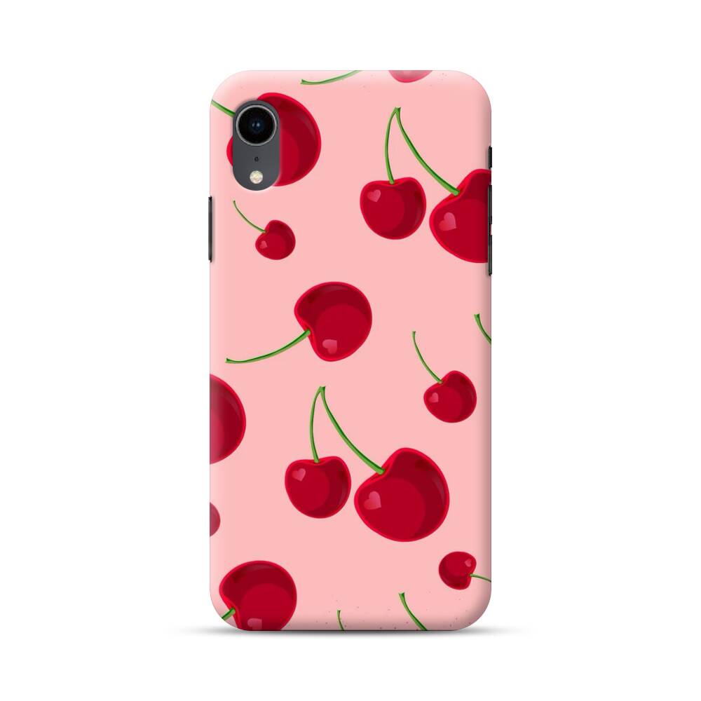 Kirsche auf dem pinken Hintergrund iPhone XR Hülle● Rundum bedruckbar