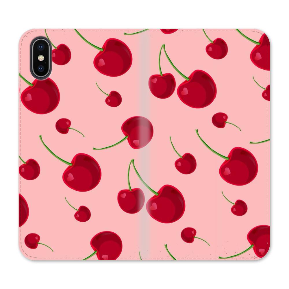 Kirsche auf dem pinken Hintergrund iPhone XS Max Wallet Leder Hülle● Seitlich klappbar