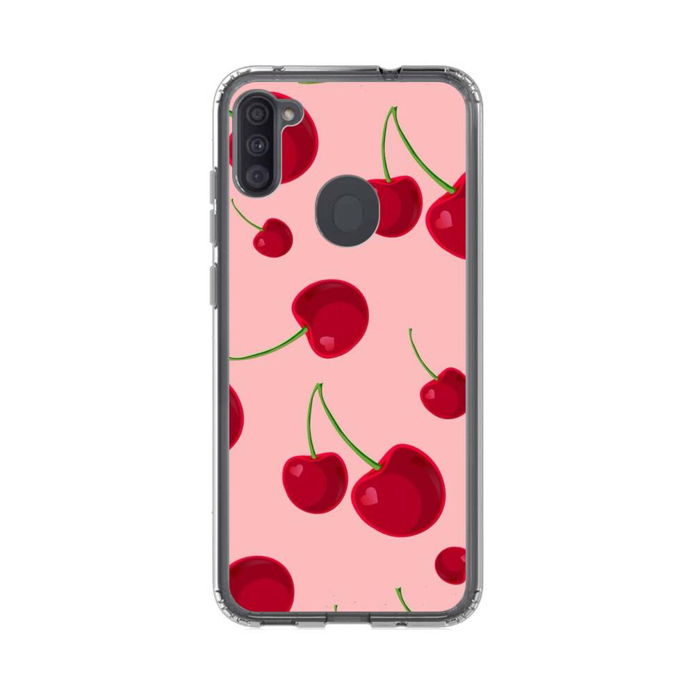 Kirsche auf dem pinken Hintergrund Samsung Galaxy A11 Silikon Hülle● Sehr robust & langlebig
