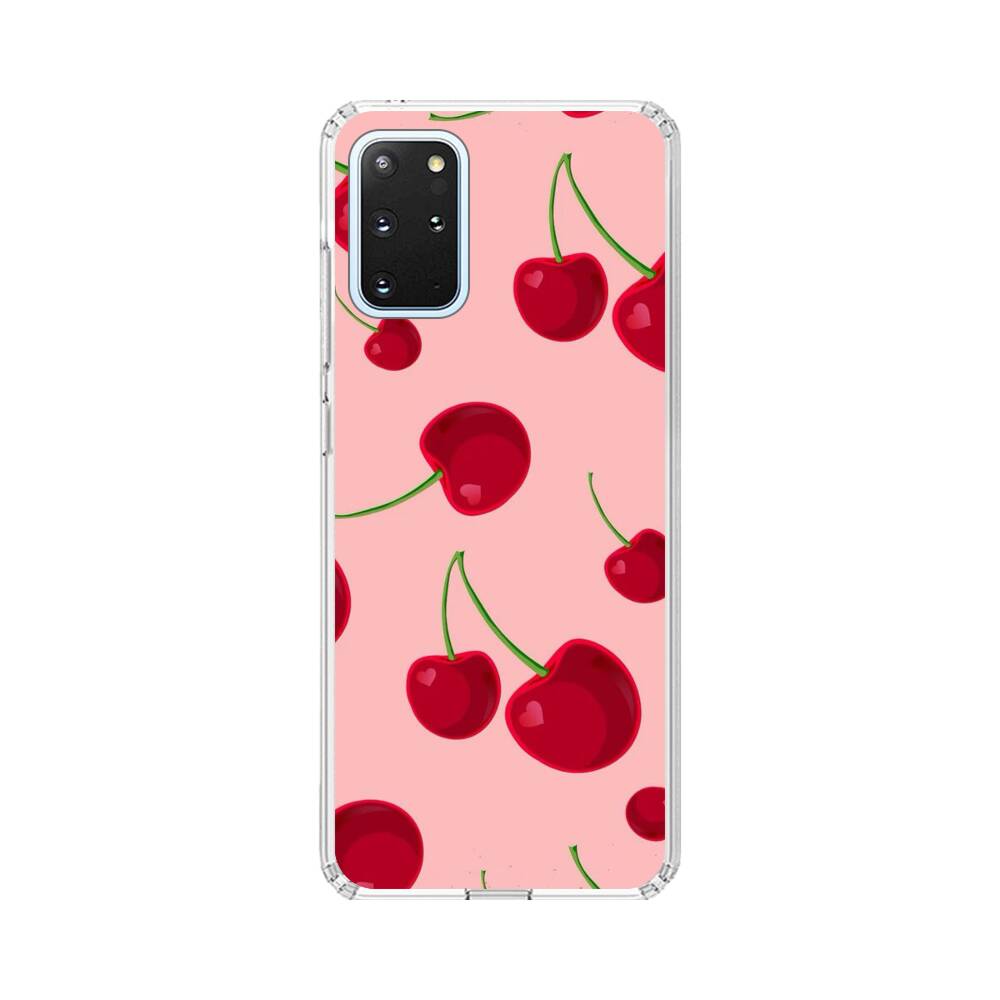 Kirsche auf dem pinken Hintergrund Samsung Galaxy S20 Plus Silikon Hülle● Sehr robust & langlebig
