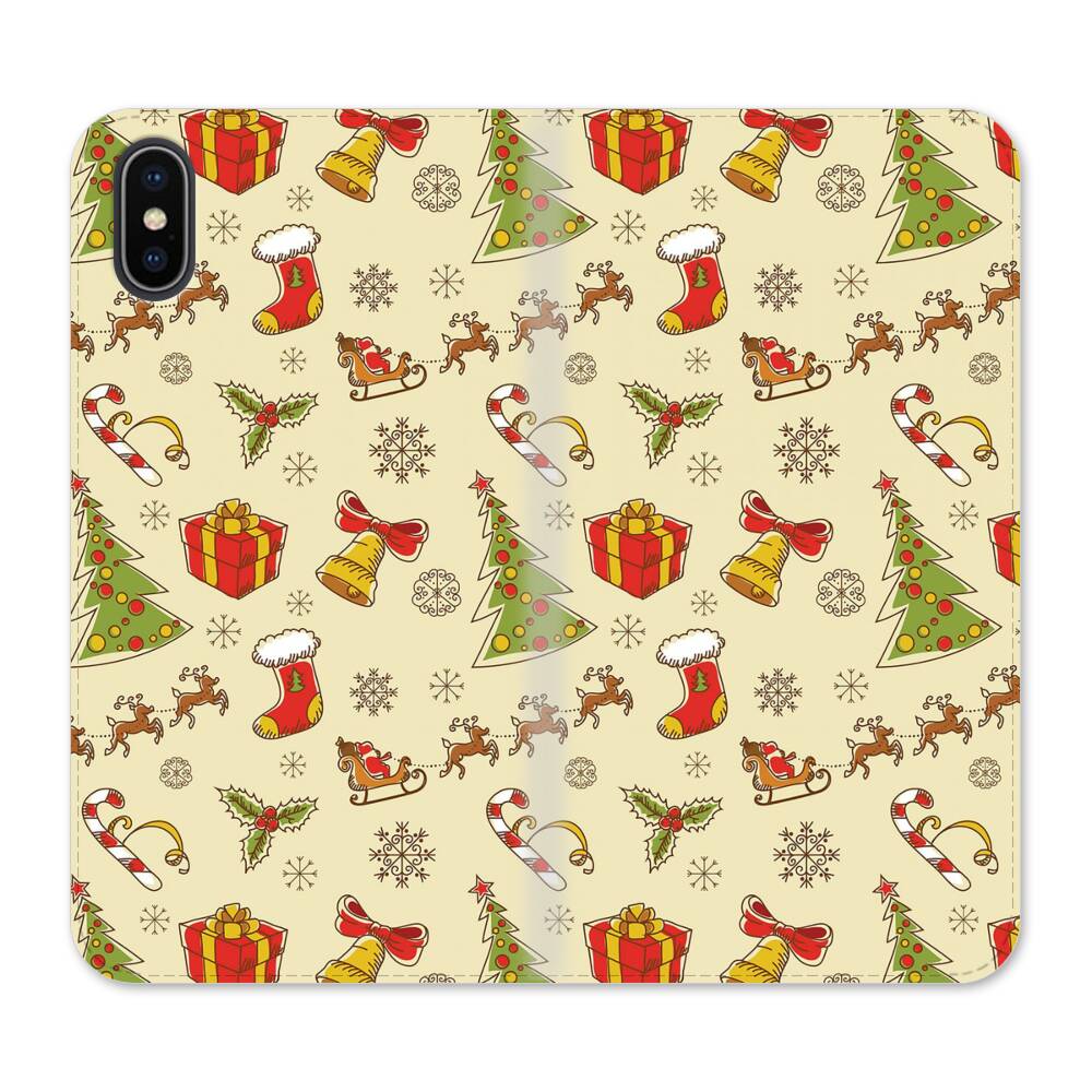 Weihnachtsmuster iPhone XS Wallet Leder Hülle● Seitlich klappbar