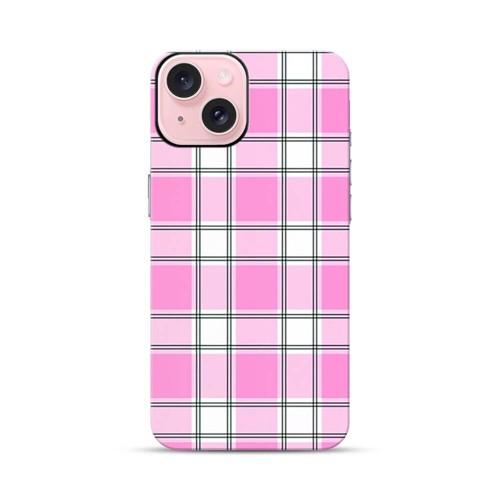 Rosa Plaid Apple iPhone 15 Hybrid Case● Rundum bedruckbar