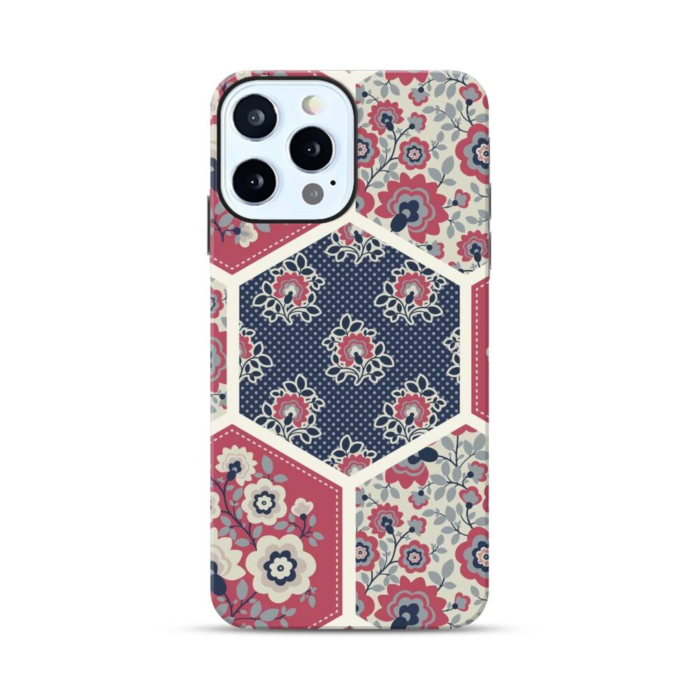 Nahtlose Sechsecke mit Blumen Apple iPhone 12 Pro Hybrid Case● Rundum bedruckbar