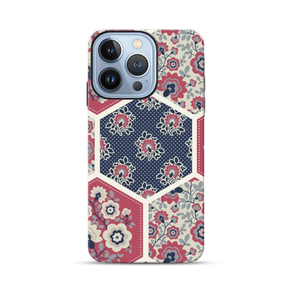 Nahtlose Sechsecke mit Blumen Apple iPhone 13 Pro Hybrid Case● Rundum bedruckbar