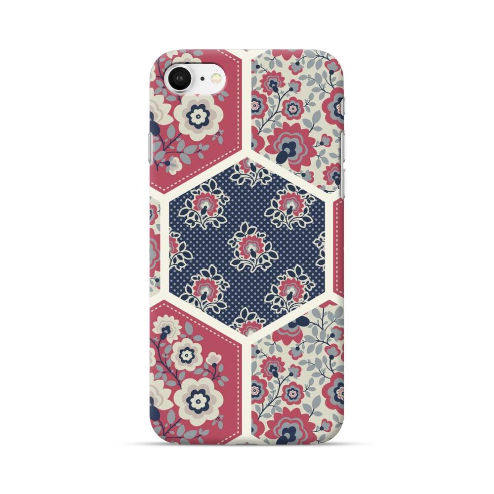 Nahtlose Sechsecke mit Blumen Apple iPhone SE (2020) Hülle● Rundum bedruckbar
