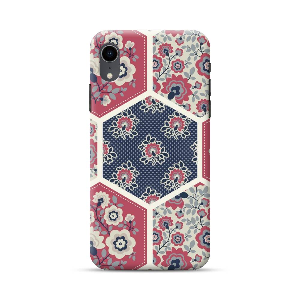 Nahtlose Sechsecke mit Blumen iPhone XR Hülle● Rundum bedruckbar