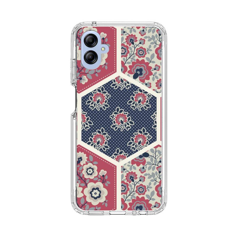 Nahtlose Sechsecke mit Blumen Samsung Galaxy A04e Silikon Hülle● Sehr robust & langlebig