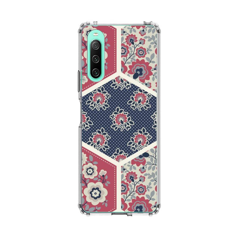 Nahtlose Sechsecke mit Blumen Sony Xperia 10 IV Silikon Hülle● Sehr robust & langlebig