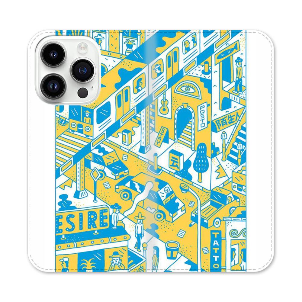 Stadt Comic Apple iPhone 14 Pro Flip Case● Seitlich klappbar