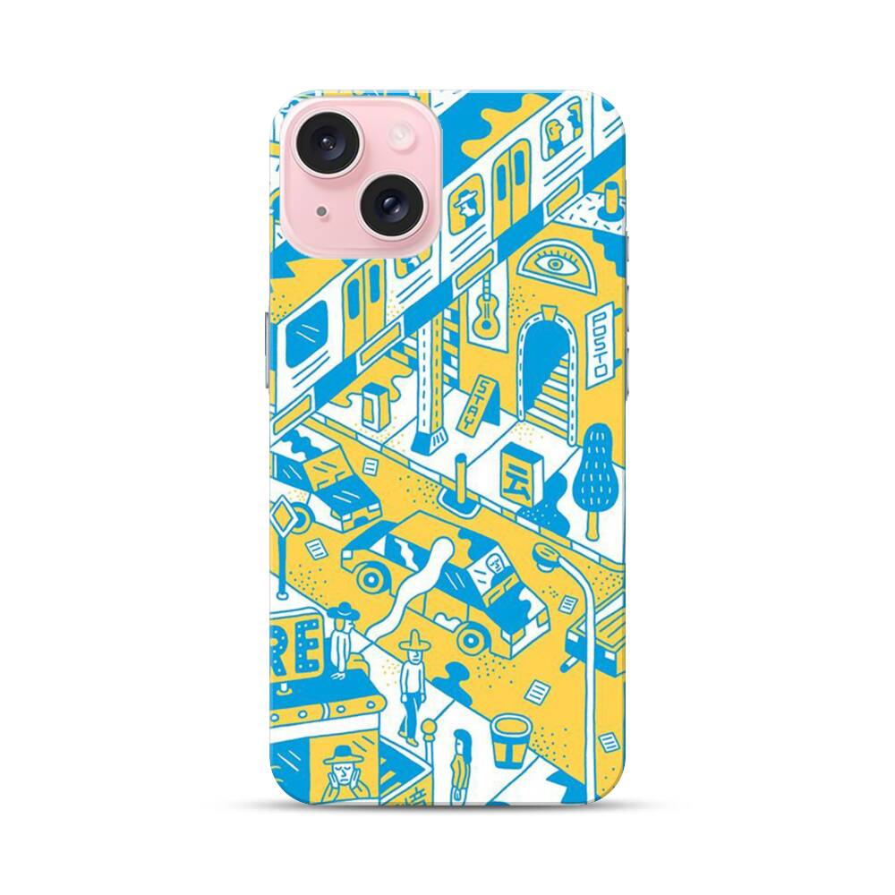 Stadt Comic Apple iPhone 15 Hülle● Rundum bedruckbar