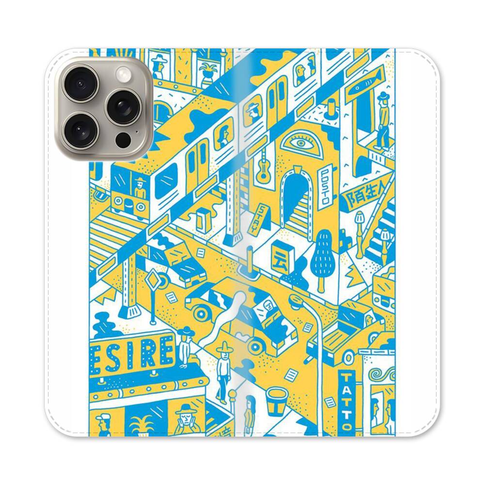 Stadt Comic Apple iPhone 15 Pro Max Flip Case● Seitlich klappbar