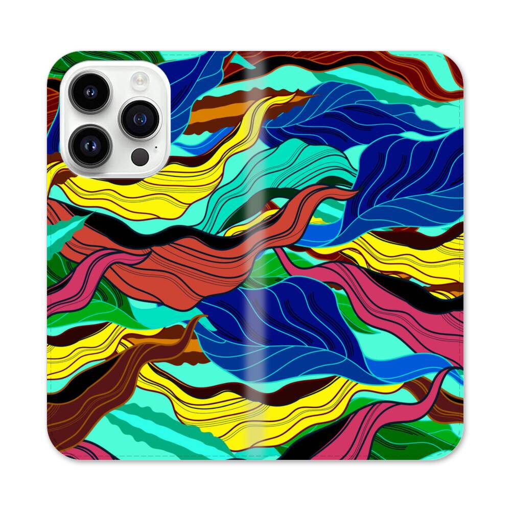 Ukiyo-e Mit Blätter Apple iPhone 14 Pro Flip Case● Seitlich klappbar