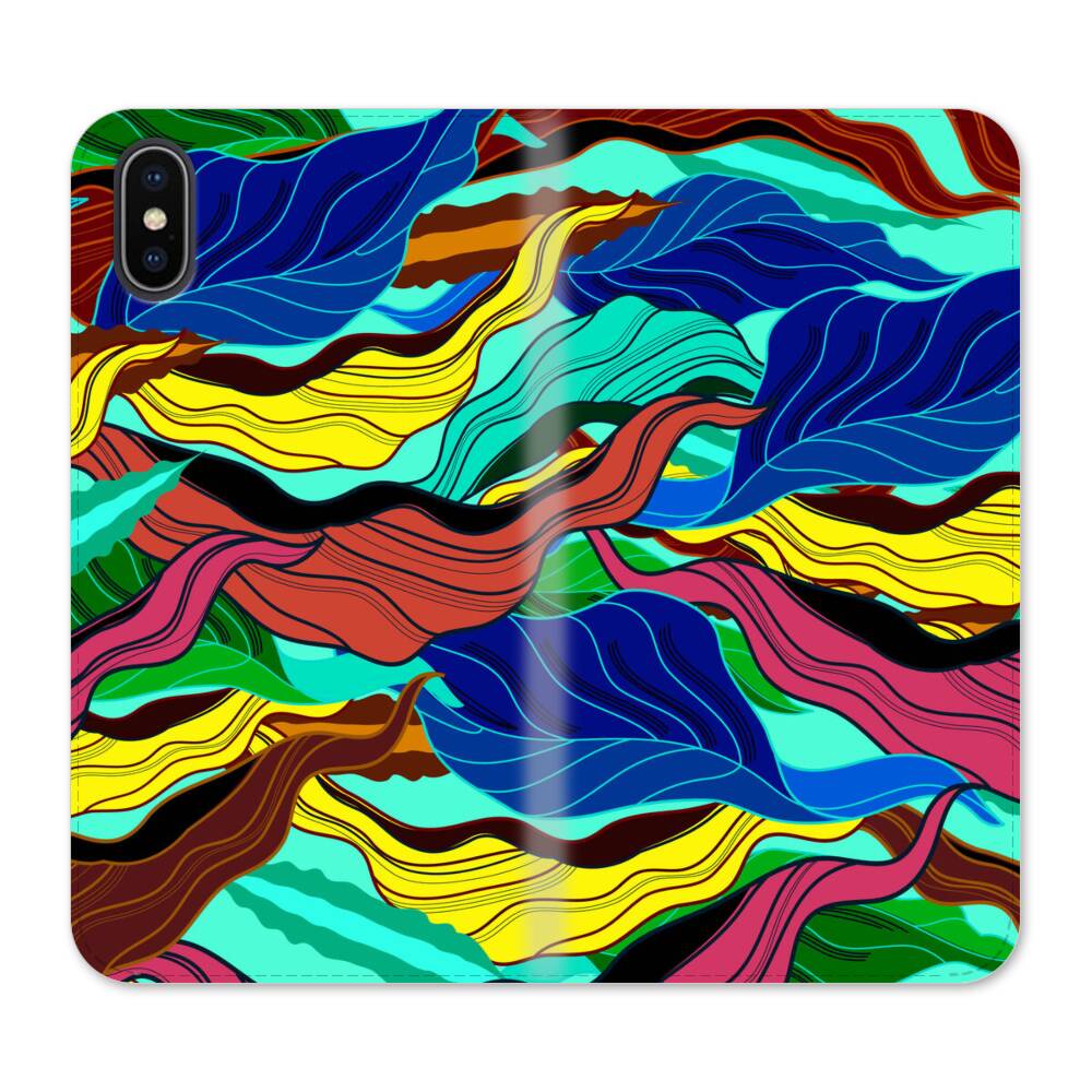 Ukiyo-e Mit Blätter iPhone XS Max Wallet Leder Hülle● Seitlich klappbar