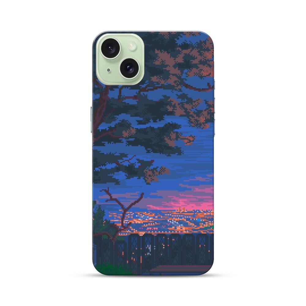 Verpixelte Nachtlandschaft Apple iPhone 15 Plus Hülle● Rundum bedruckbar