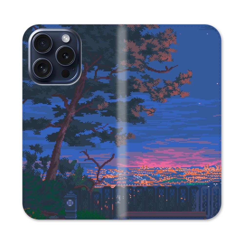 Verpixelte Nachtlandschaft Apple iPhone 15 Pro Flip Case● Seitlich klappbar