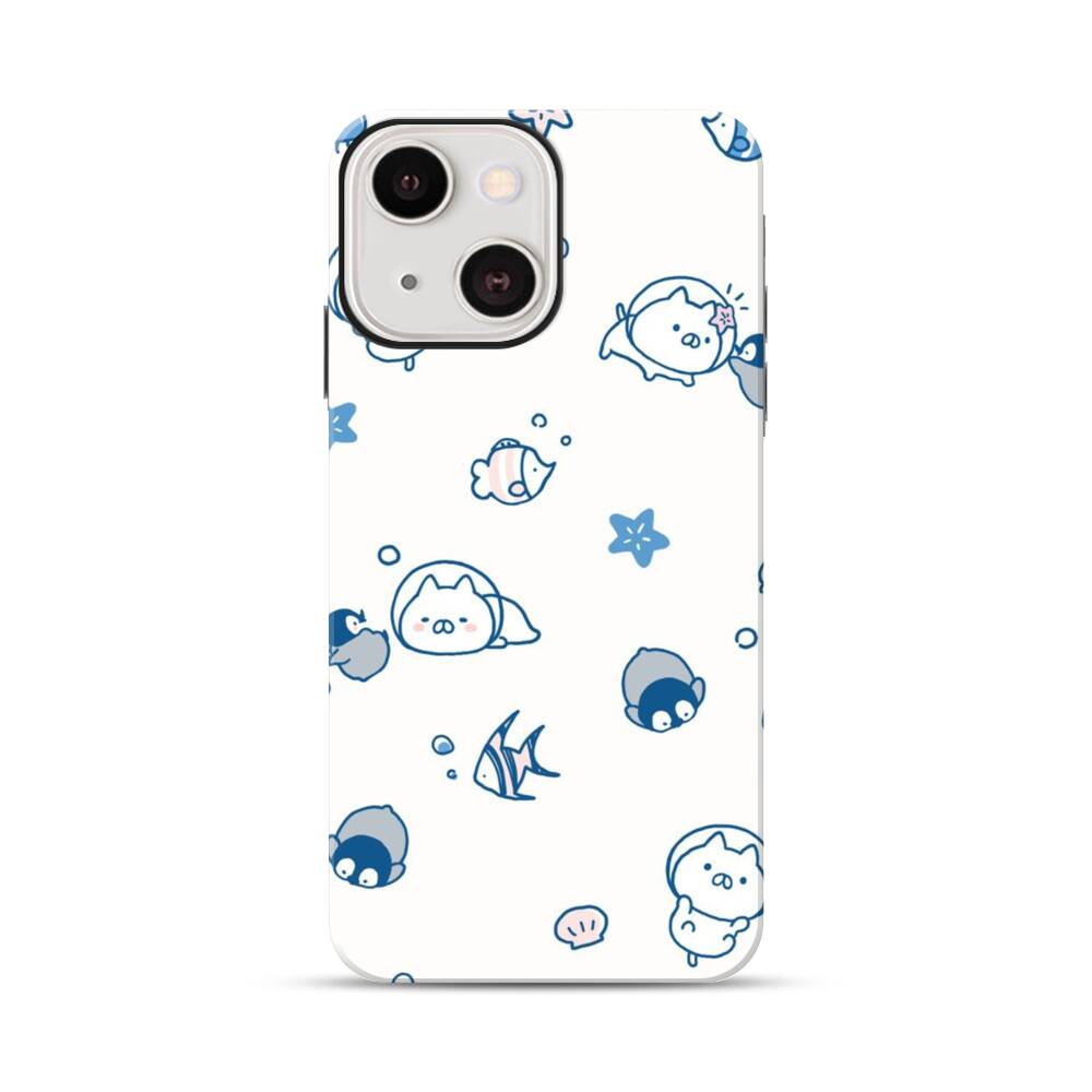 Süße Schweinchen und Fische Apple iPhone 13 Hybrid Case● Rundum bedruckbar