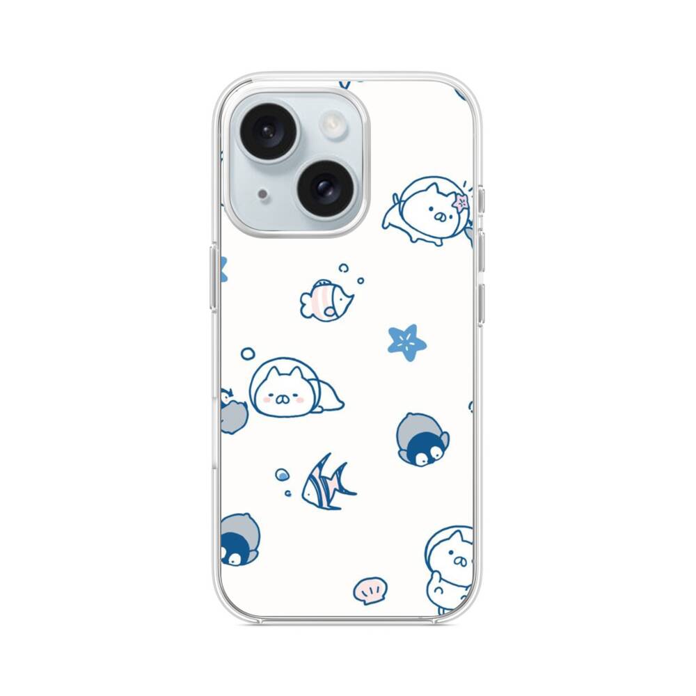 Süße Schweinchen und Fische iPhone 15 MagSafe‑kompatible Silikonhülle mit Kamera‑Kickstand● Sehr robust & langlebig