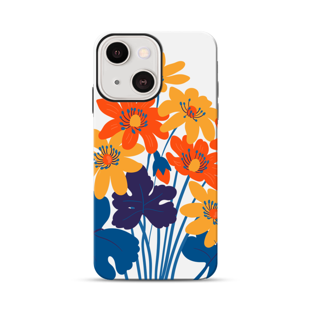 Orange Blüten Apple iPhone 13 Mini Hybrid Case● Rundum bedruckbar