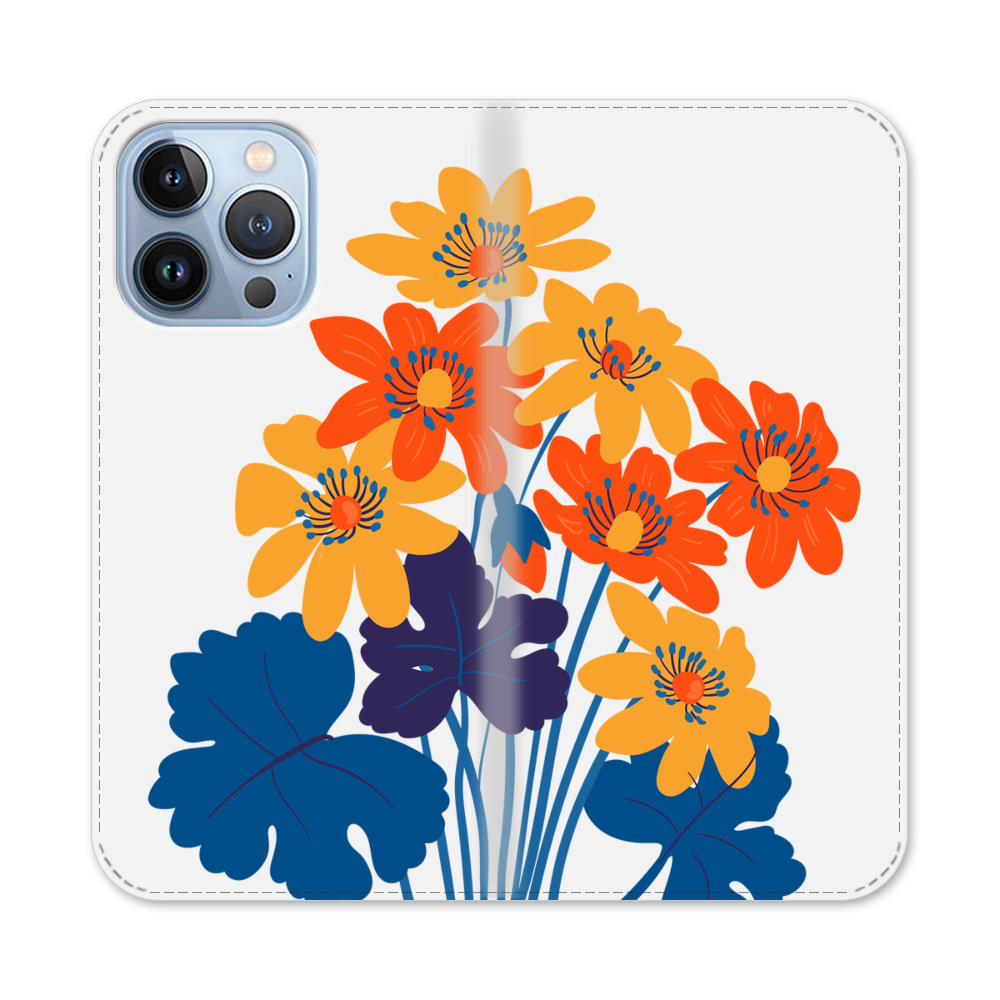 Orange Blüten Apple iPhone 13 Pro Flip Case● Seitlich klappbar