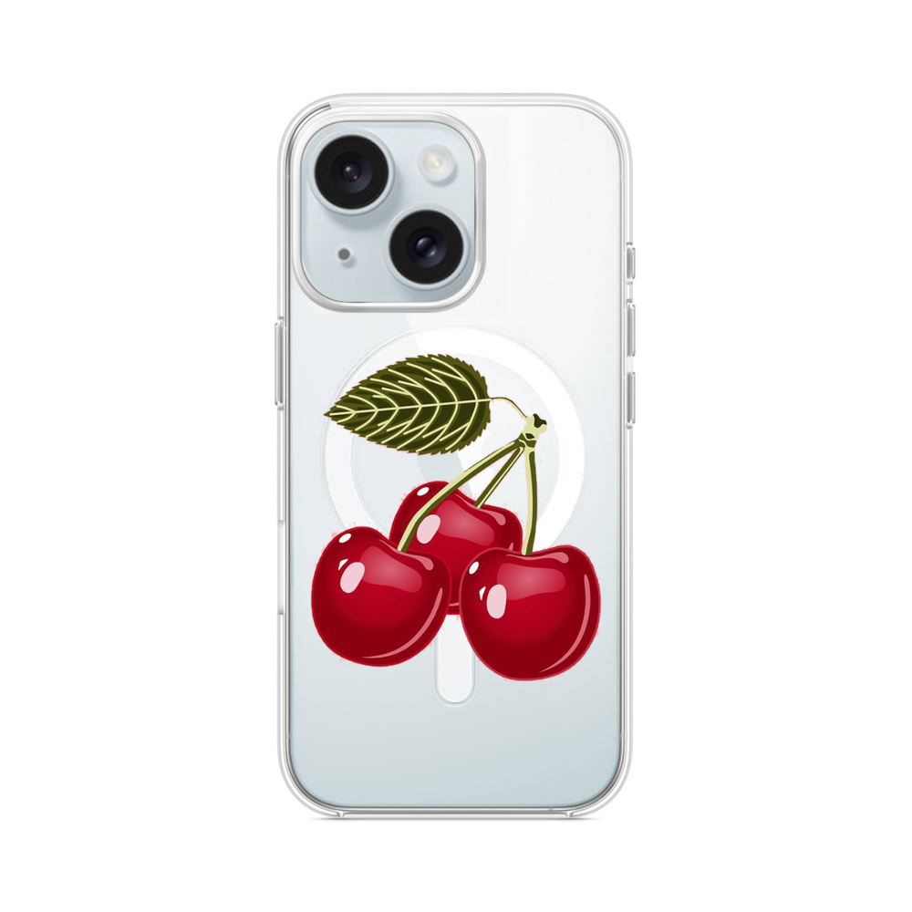 Klassische Kirsche iPhone 15 MagSafe‑kompatible Silikonhülle mit Kamera‑Kickstand● Sehr robust & langlebig