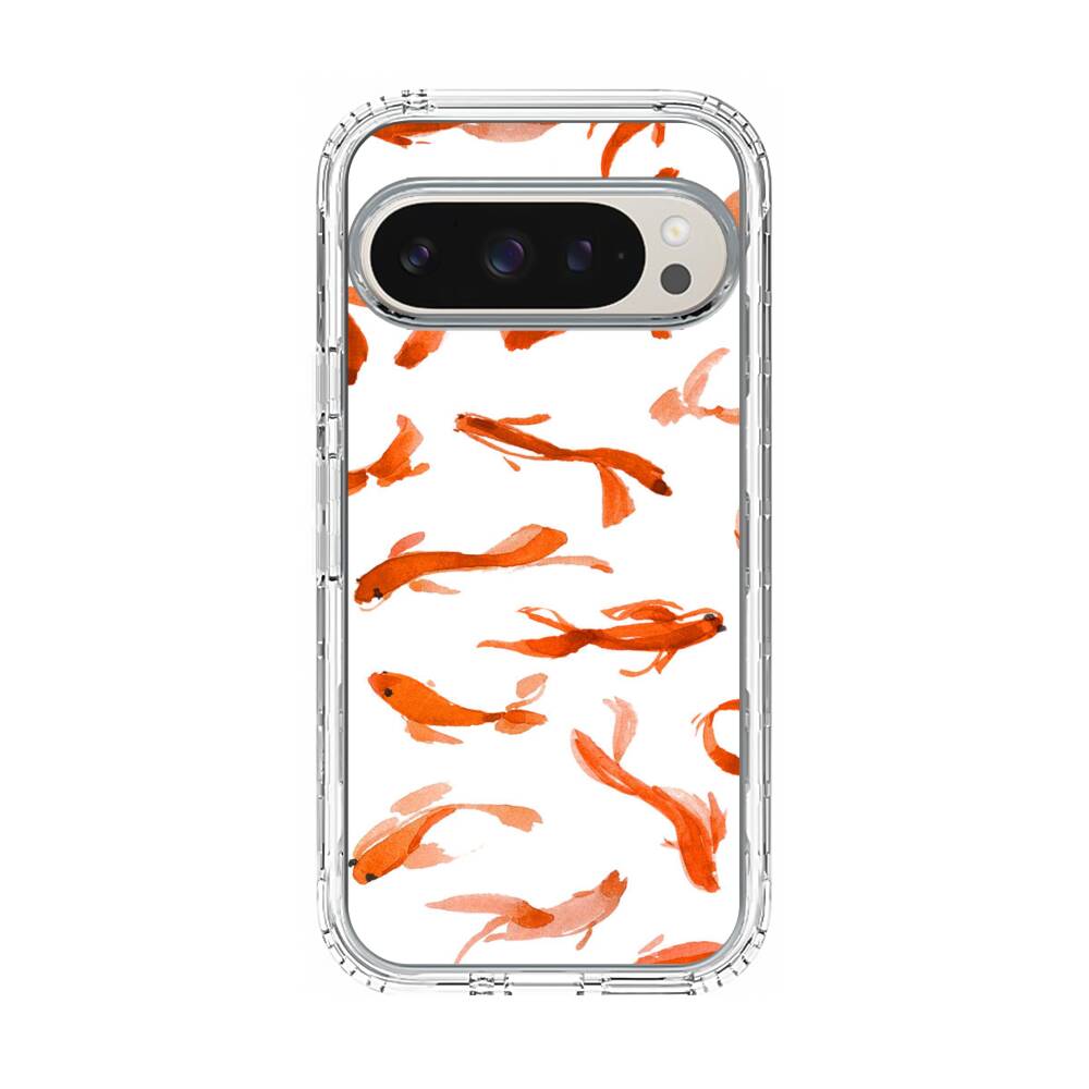 Nahtlose Rote Fische Google Pixel 9 Pro Silikon Hülle● Sehr robust & langlebig
