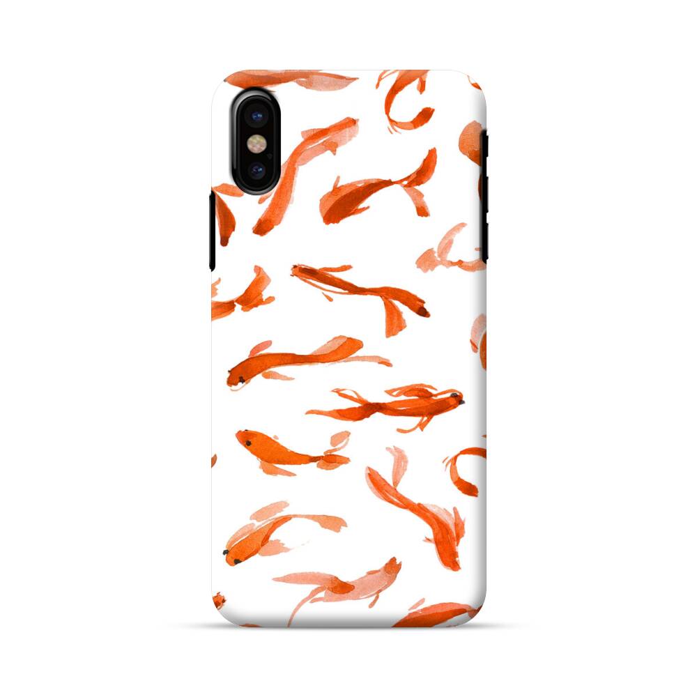 Nahtlose Rote Fische iPhone X Hülle● Rundum bedruckbar