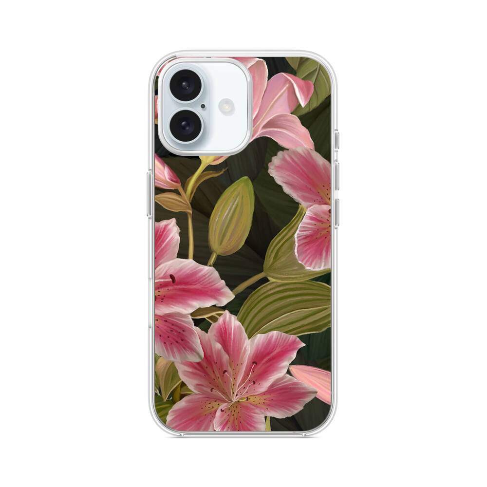 Erröttende Lilien iPhone 16 Plus MagSafe‑kompatible Silikonhülle mit Kamera‑Kickstand● Sehr robust & langlebig