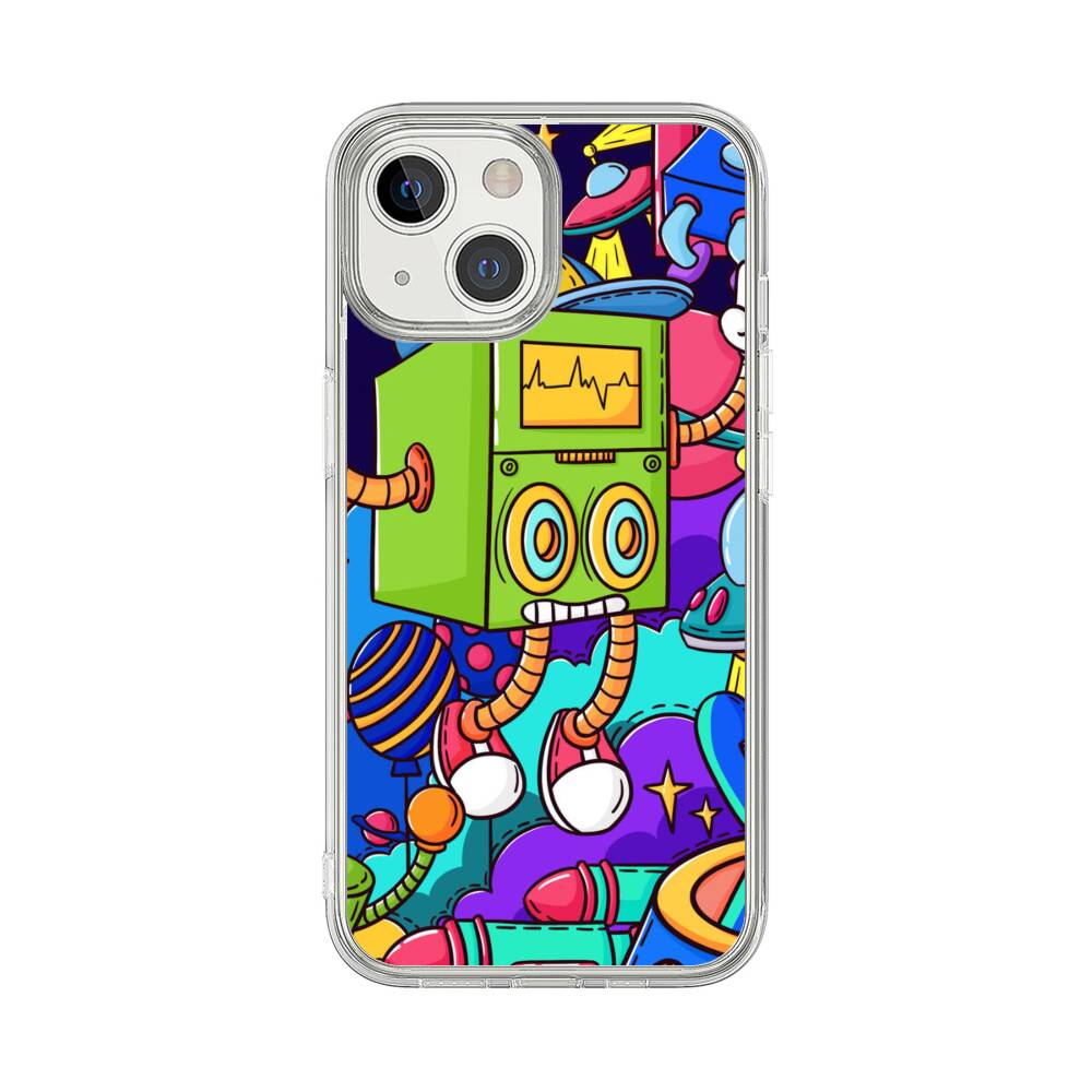 Roboter auf Planeten Apple iPhone 13 Mini Silikon Hülle● Sehr robust & langlebig