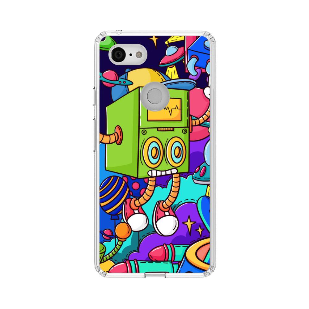 Roboter auf Planeten Google Pixel 3 XL Silikon Hülle● Sehr robust & langlebig