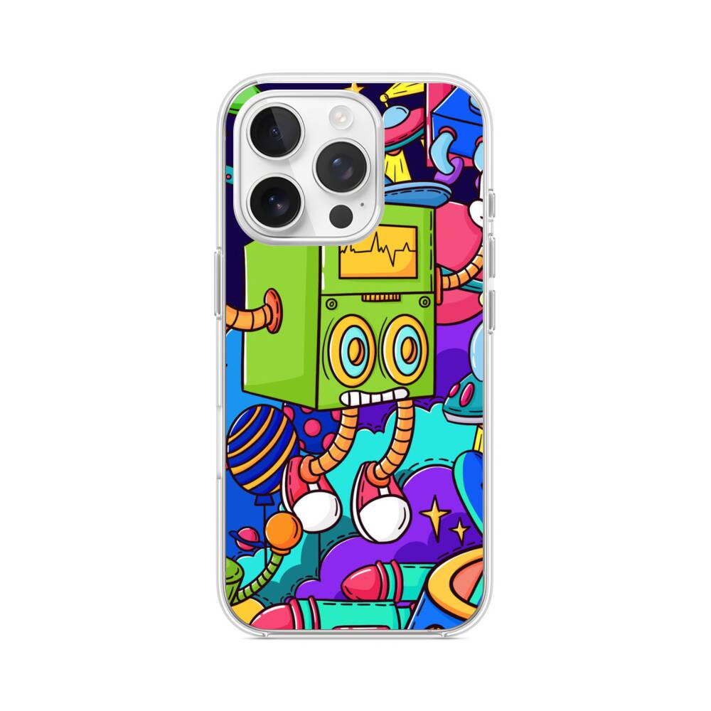 Roboter auf Planeten iPhone 14 Pro MagSafe‑kompatible Silikonhülle mit Kamera‑Kickstand● Sehr robust & langlebig