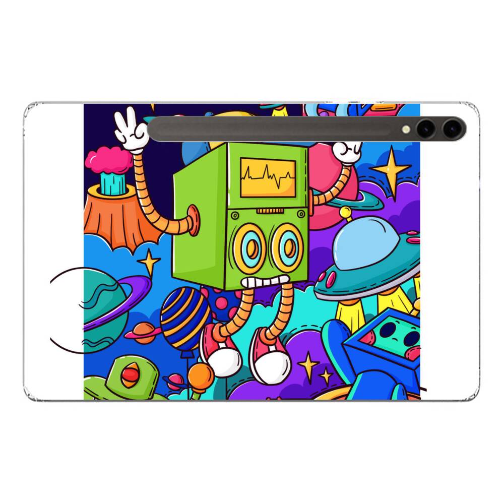 Roboter auf Planeten Samsung Galaxy Tab S10 Plus Silikon Hülle● Sehr robust & langlebig