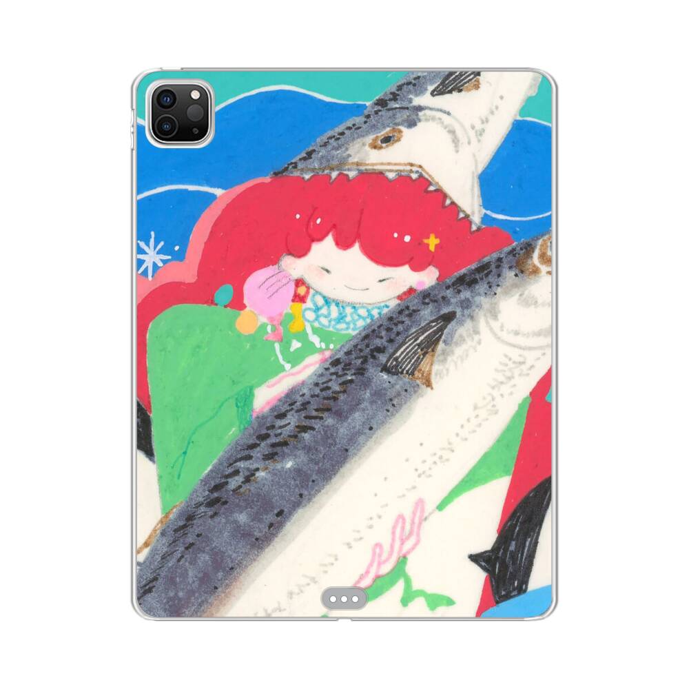 Kawaii Mädchen auf der Fischen Apple iPad Pro 12.9 (2022/2021) Silikon Hülle● Sehr robust & langlebig