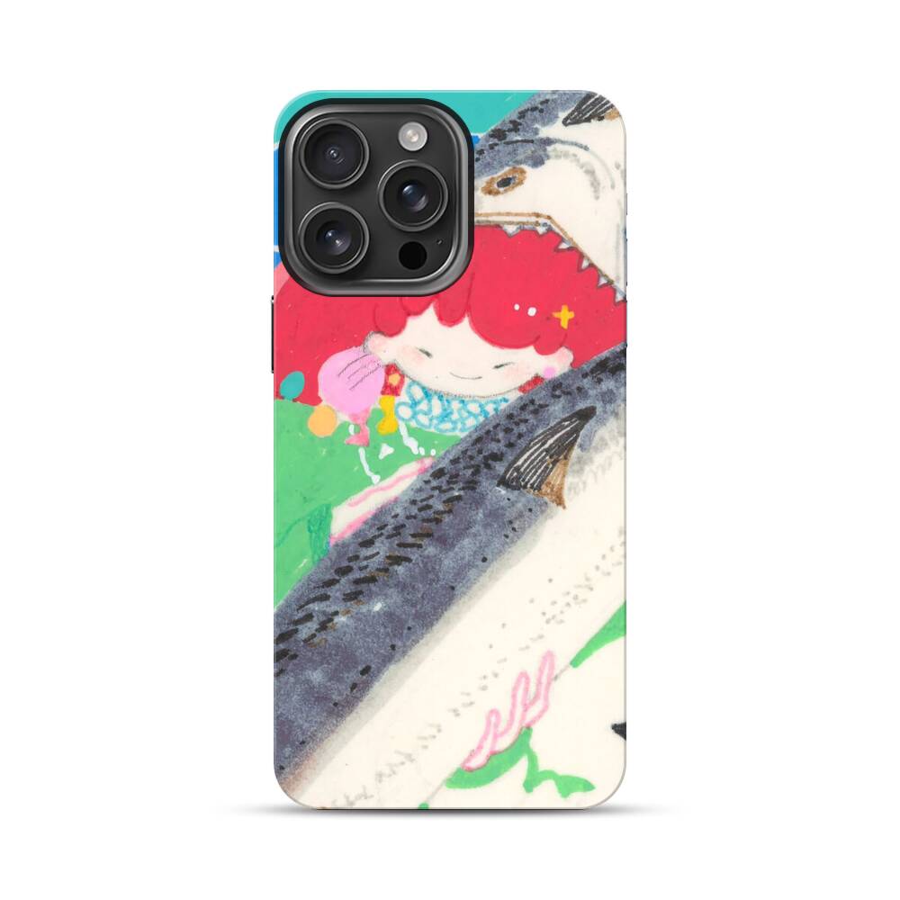 Kawaii Mädchen auf der Fischen Apple iPhone 16 Pro Max Hybrid Case● Rundum bedruckbar