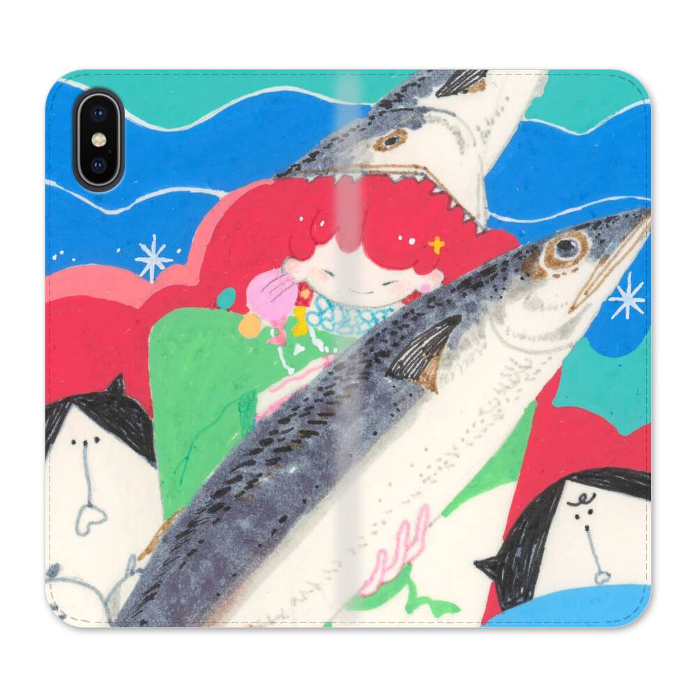 Kawaii Mädchen auf der Fischen iPhone XS Wallet Leder Hülle● Seitlich klappbar