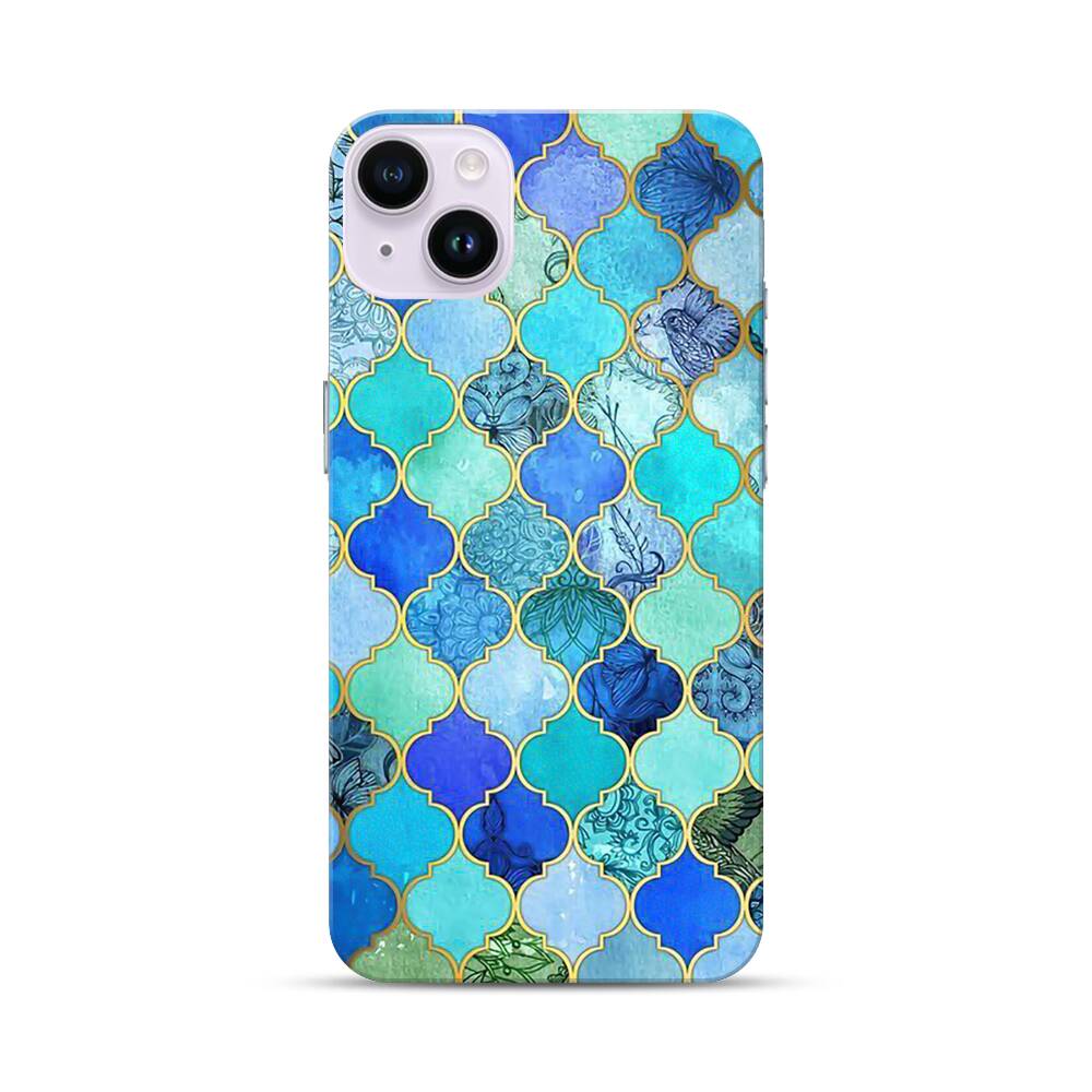 Königsblau Muster Apple iPhone 14 Plus Hülle● Rundum bedruckbar