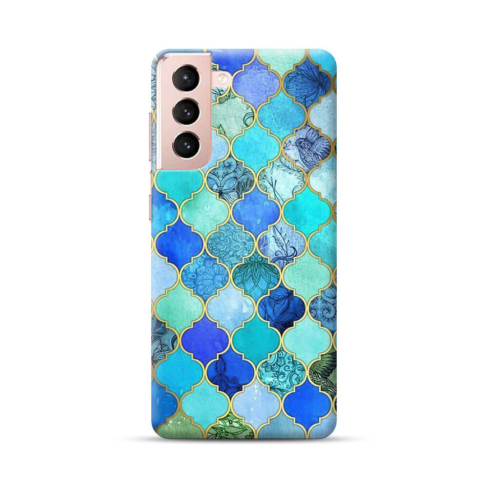 Königsblau Muster Samsung Galaxy S21 Hülle● Rundum bedruckbar