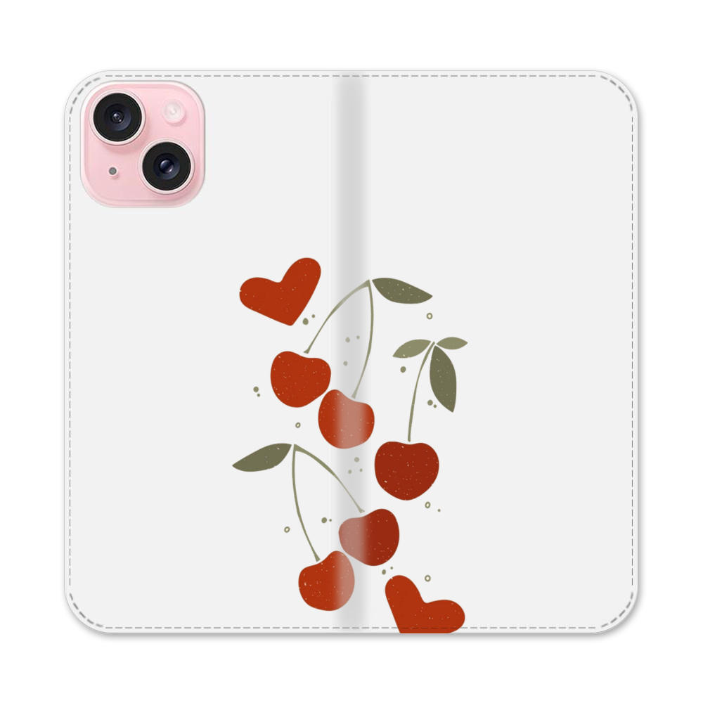 Herzförmige Kirsche Apple iPhone 15 Flip Case● Seitlich klappbar