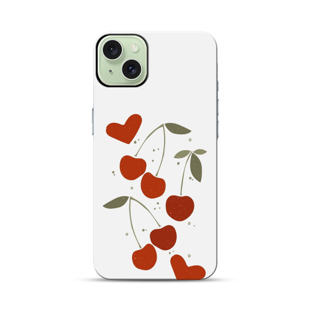 Herzförmige Kirsche Apple iPhone 15 Plus Hybrid Case● Rundum bedruckbar